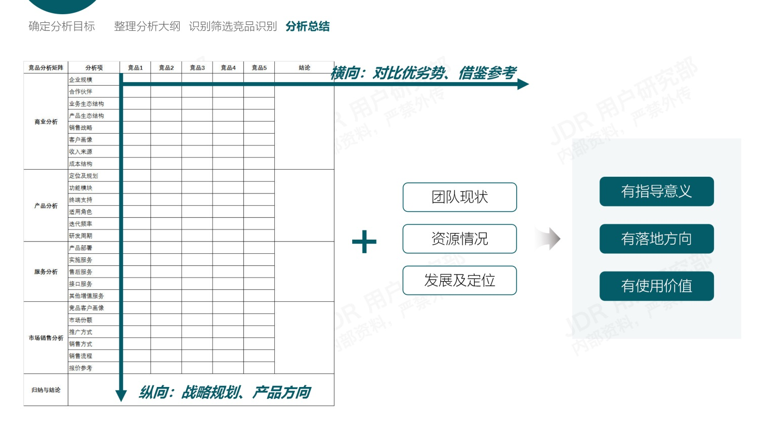 定目標 → 2. 搭框架 → 3. 找競品 → 4. 巧體驗 → 5. 對比分析 → 6. 輸出結論與迭代建議