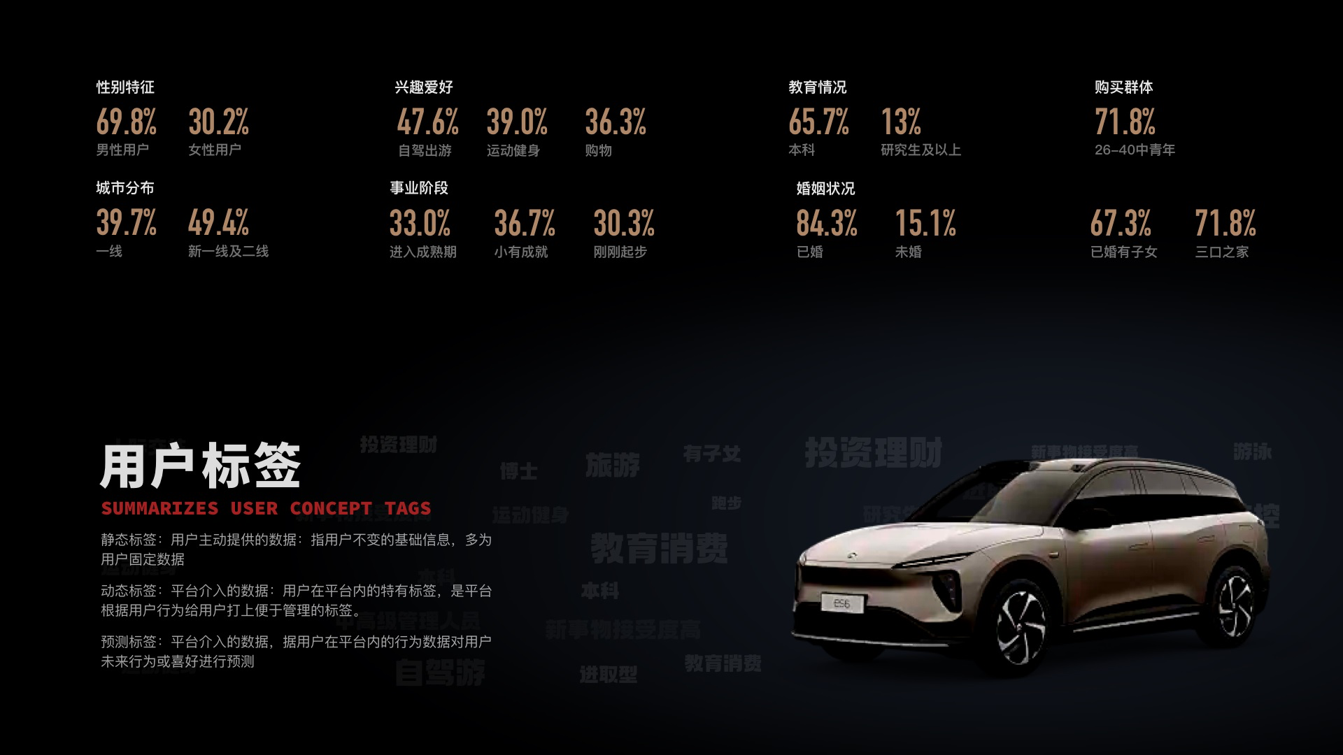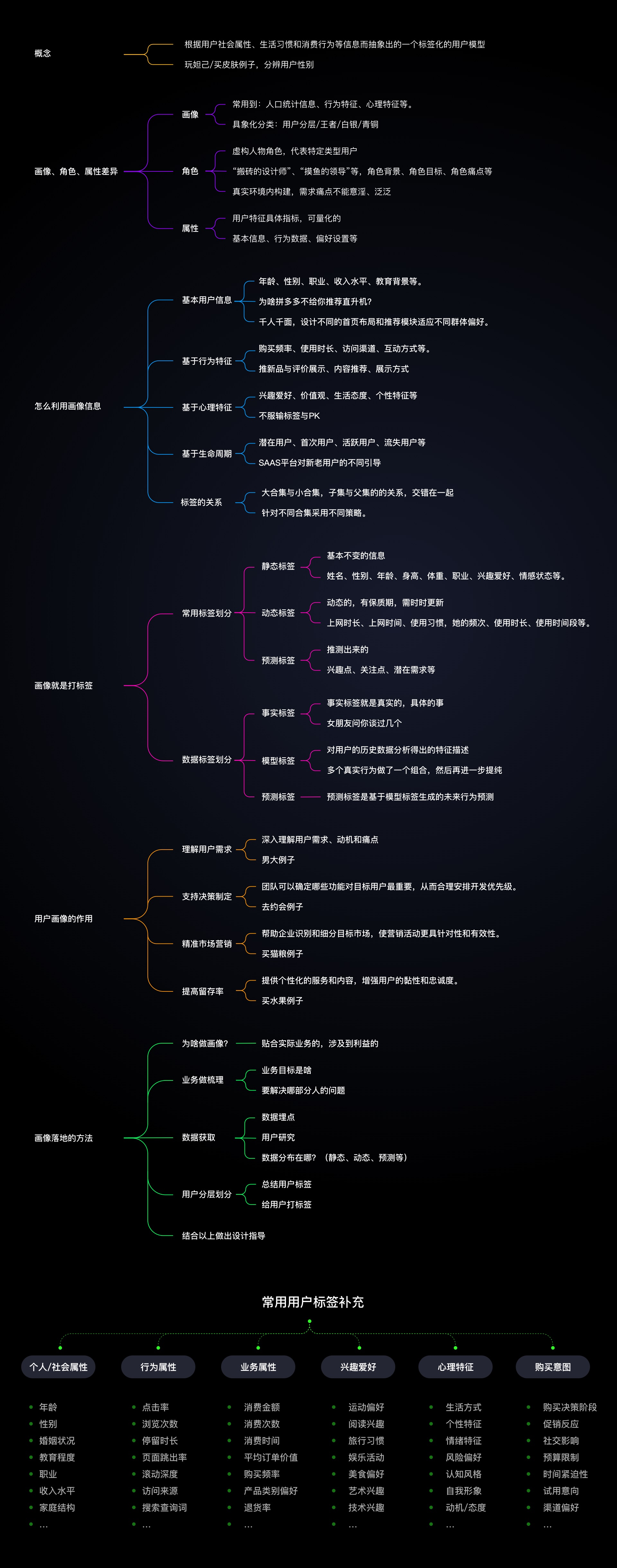 對某類人中的典型用戶跟蹤總結 ,其中包含個人屬性、生活方式、社會屬性、家庭屬性等等。