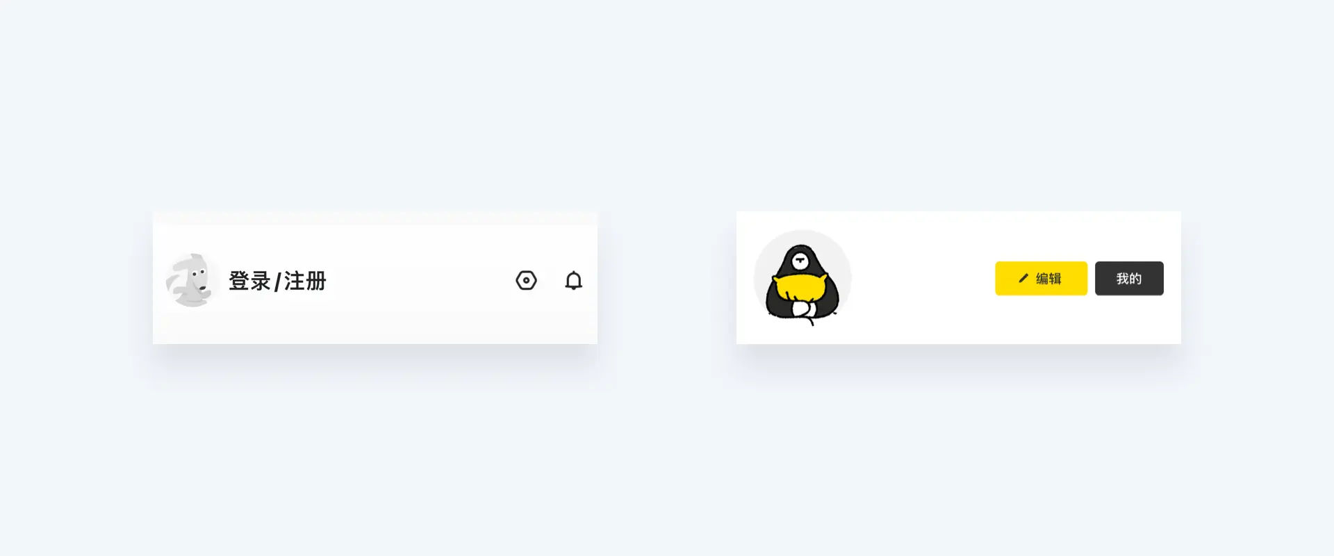 即角度為90°的線性漸變,它通常被用在正方形或豎條形的元素上,如注冊登陸頁,個人中心頭部等;垂直漸變中上下兩種色彩的深淺變化會產生截然不同的視覺效果,上淺下深會讓給人一種凸起的立體感,而上深下淺會給人一種凹陷下去的空間感。