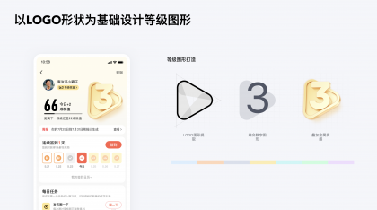 ?決定用戶(hù)動(dòng)機(jī)主要有8個(gè)核心的驅(qū)動(dòng)力:使命感、成就感、創(chuàng)造力、擁有感、社交性、稀缺感、好奇心、逃避心。因此利用用戶(hù)對(duì)于尊貴等級(jí)地位的追求進(jìn)行等級(jí)圖標(biāo)設(shè)計(jì),以LOGO形狀為基礎(chǔ)設(shè)計(jì)了等級(jí)圖形,使用辨識(shí)度和認(rèn)知成本較低的數(shù)字進(jìn)行等級(jí)彰顯,體現(xiàn)等級(jí)的遞進(jìn),同時(shí)采用不同顏色突出1至6等級(jí)的差異,高等級(jí)添加更明顯的金屬感,營(yíng)造稀有性和高貴感,同時(shí)在社交場(chǎng)景如“互動(dòng)區(qū)”、“個(gè)人中心”等,突出用戶(hù)身份。