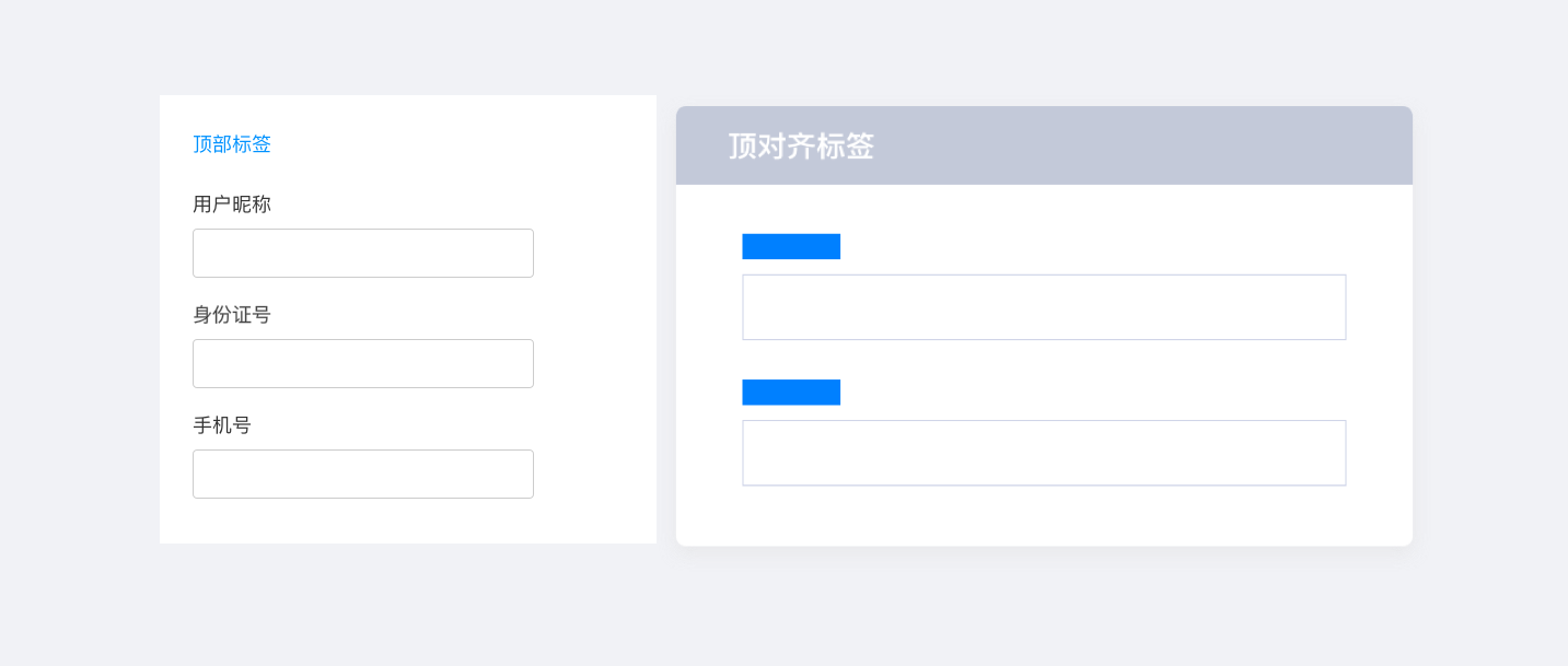 左對齊標簽使用場景:需要用戶謹慎填寫的情況下推薦使用左側對齊標簽。