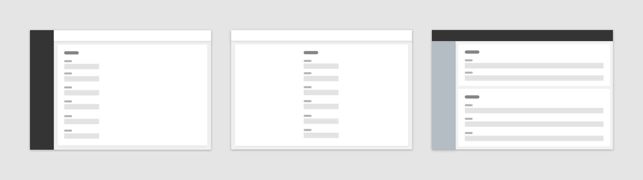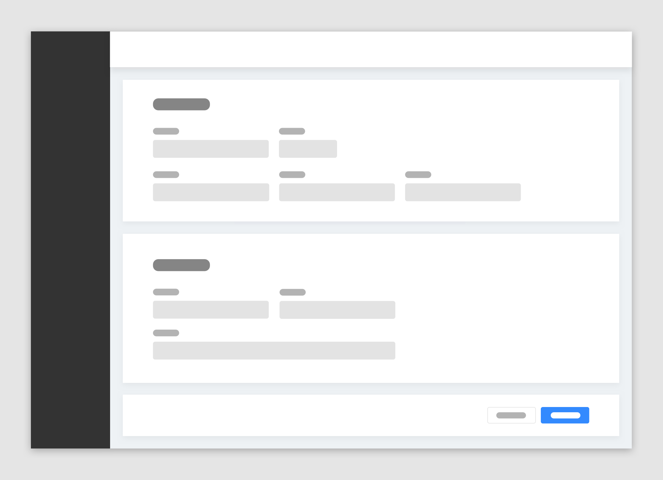 卡片分組布局一般用來處理高復雜類型表單。當業務中希望頁面承載眾多表單字段時,可將信息相關性弱的字段拆分為多個部分,并通過多個卡片分組承載不同類型字段,每個卡片都需有個卡片類別標題。