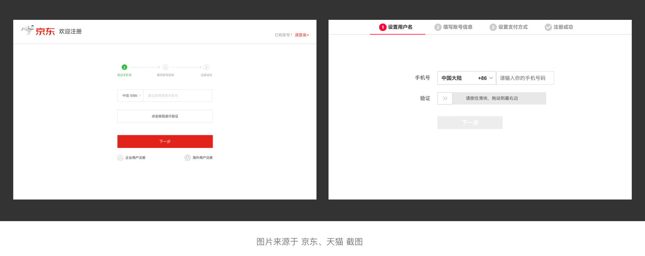 我們以淘寶來舉個典型的例子,淘寶屬于國民電商平臺也是亞洲較大的網上交易平臺,提供各類優質商品。從平臺的特性來講,它以用戶下單并成交作為最終目標。其中支付表單起著一個關鍵的作用,用戶從購買到支付完成以分步形式進行,第一步填寫基本信息并提交訂單,第二步選擇商品并選擇支付貨款至第三方,第三步買方確認收貨并自動打款給商家,第四步完成訂單并評價。在填寫表單時中間沒任何阻斷,用戶能很順利的按步驟完成訂單。淘寶支付表單屬于比較典型的分步表單。