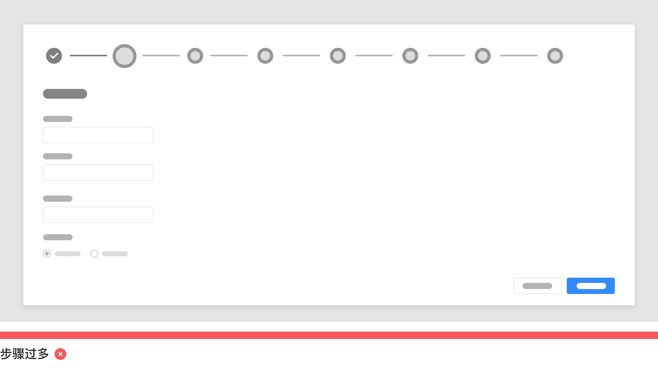 但是設計師需要注意的是不要太過于細化步驟以及在小型彈出窗出現過多的步驟,過多的步驟不利與用戶填寫和記憶,反而增加用戶負擔。