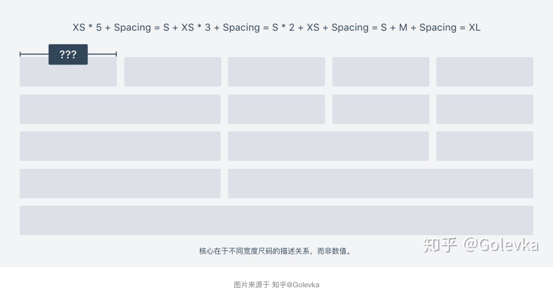 可以給字段設置幾檔寬度梯度的尺寸,我們可以站在AntDesign這個巨人的肩膀汲取一些相關經驗,其中4.0系列分享的文章中總結到其經過對十幾個業務線梳理,將組件寬度定義了5中高頻的空間尺寸,分別是: XS(80~160px)、S (160~280)、M(280~360px)、L (360px~480px)、XL (480~560px)。根據原理,我們可以假設原子寬度XS為100,那么通過尺寸的倍數+間距的方式來計算其他的四種尺寸(間距暫定8px情況下得到:S=208px、M=316px、L=424px、XL=532px),通過此計算方式也是用來解決視覺對齊規則,如下圖所示: