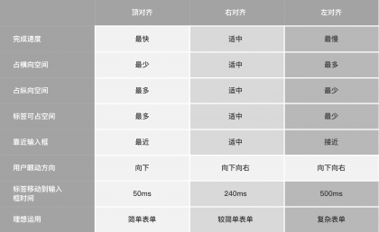 在設計表單時到底是左對齊、右對齊還是頂部對齊呢?這個問題也是在實際業務中設計師發問頻率較高的一個棘手問題。其實,不論是哪種方式都有相對的利弊,需要根據實際業務場景提供不同的解決方案。在Matteo Penzo《Label Placement in Forms》文章中有分享過關于表單標簽放置的研究,下圖是Matteo Penzo研究總結得到的瀏覽時間表: