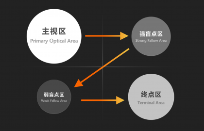 所以,界面中的左上和右下是用戶視覺最為重點關注的位置。遵循古騰堡法則,設計師應該把界面的關鍵元素放在主視區,終點區可以放按鈕、強提示,盲點區可以用來放一些相對次要的內容,如輔助圖形、文字信息。