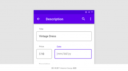 針對上面問題也不是沒有解決方案,在Material Design中有提供針對上面的問題的解決方案,我們這邊暫時稱其為“浮動標簽”,默認情況下輸入框內顯示占位文本,當用戶輸入內容以后占位文本浮動到內容上方與內容左對齊。