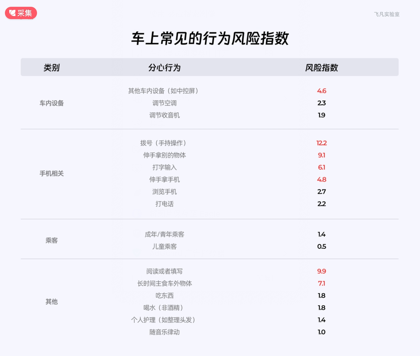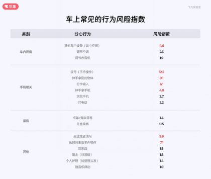 2、車上常見的行為風險指數
