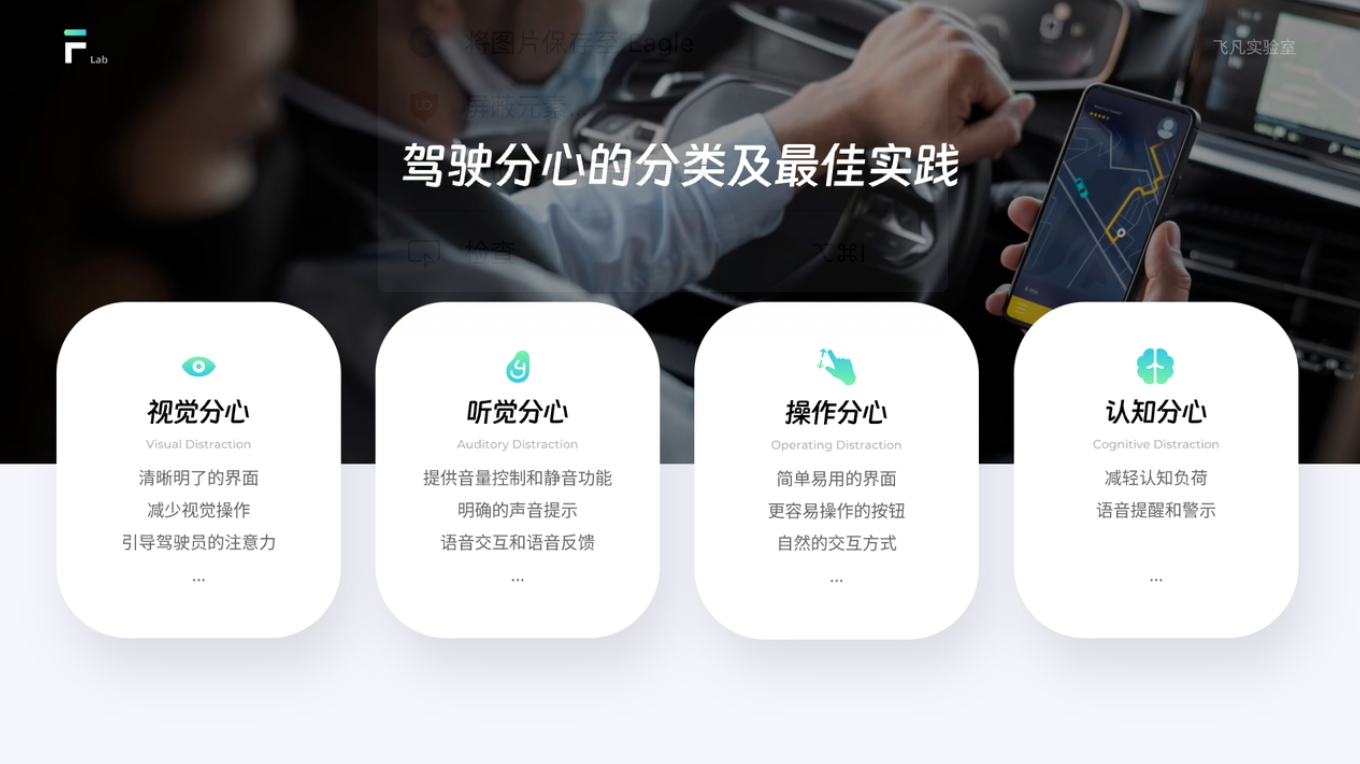 通過了解和分類駕駛分心,我們可以更有針對性地設計車載界面,減少駕駛員的分心情況,提高駕駛的安全性和效率。同時,提供合適的駕駛輔助功能和注意力提醒,可以幫助駕駛員更好地集中注意力,降低事故風險。