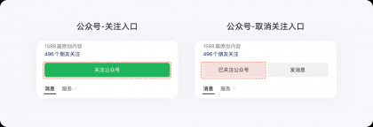有時候,出于商業(yè)化的目的,同一個選項在二次操作時,產(chǎn)品會刻意增加用戶操作成本,以降低選擇效率,看似希克定律的反向操作,卻一定程度地降低了用戶退出率,實則對產(chǎn)品有益。例如,在關(guān)注微信公眾號之前,非常醒目的關(guān)注按鈕觸手可及,可關(guān)注之后,弱化的幽靈按鈕及文案,很難一眼看出這就是取消關(guān)注入口,需要用戶花費(fèi)額外的時間去理解或試錯方可取關(guān),這么做能降低公眾號粉絲的取關(guān)量。為公眾號留住粉絲,更是對內(nèi)容認(rèn)可的一種支持,后面的良性循環(huán)無需多講。