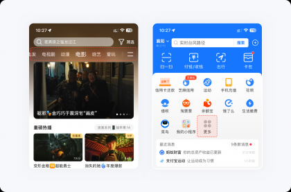 如果大量的選項無法減少,可將重要選項靠前,將其他的隱藏起來,方便用戶決策及降低失誤操作的概率。例如騰訊視頻頂部分類后面的更多圖標(biāo)、支付寶首頁金剛區(qū)的更多入口,點(diǎn)開后就會發(fā)現(xiàn),里面隱藏了非常多的功能,這樣做能減少用戶認(rèn)知負(fù)荷,提高信息篩選的效率。