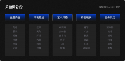 3D主視覺我們采用文生圖的方式制作,寫關鍵詞的基本公式參考下圖,具體寫關鍵詞時,需要靈活進行增減,然后不斷嘗試,直到出現自己滿意的效果。