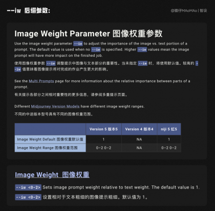 使用 --iw 后綴參數時,需要“墊圖”,就是把參考圖的鏈接加到關鍵詞中,接下來我們看看關鍵詞不變的情況下,只加墊圖和后綴參數,能不能達到我們想要的效果。