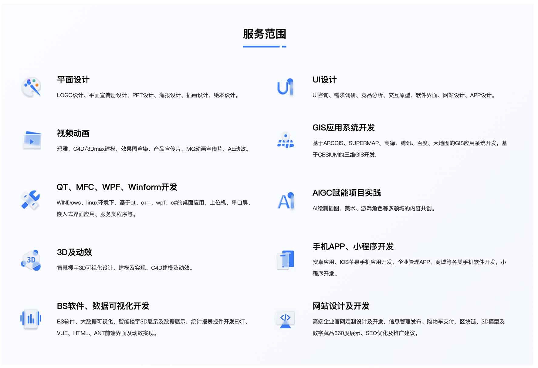 關鍵詞:UI咨詢、UI設計服務公司、軟件界面設計公司、界面設計公司、UI設計公司、UI交互設計公司、數據可視化設計公司、用戶體驗公司、高端網站設計公司、銀行金融軟件UI界面設計、能源及監控軟件UI界面設計、氣象行業UI界面設計、軌道交通界面設計、地理信息系統GIS UI界面設計、航天軍工軟件UI界面設計、醫療行業軟件UI界面設計、教育行業軟件UI界面設計、企業信息化UI界面設計、軟件qt開發、軟件wpf開發、軟件vue開發