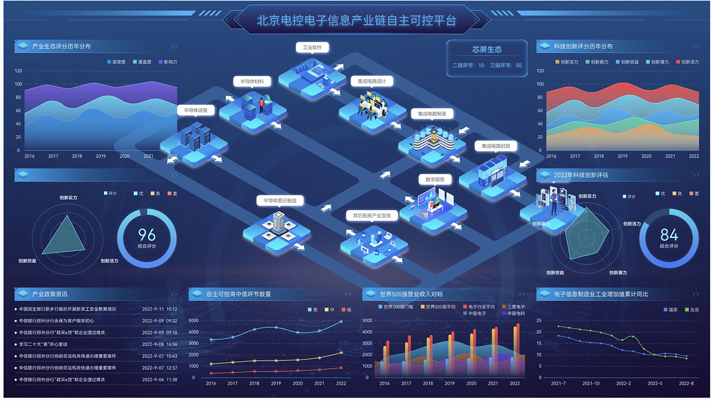 項(xiàng)目背景:產(chǎn)業(yè)鏈自主可控平臺是指一個集成了多方參與者的平臺,旨在實(shí)現(xiàn)對整個產(chǎn)業(yè)鏈的自主控制和管理。該平臺通過整合各個環(huán)節(jié)的資源、技術(shù)和信息,以實(shí)現(xiàn)產(chǎn)業(yè)鏈的協(xié)同發(fā)展和自主創(chuàng)新。過建立產(chǎn)業(yè)鏈自主可控平臺,可以促進(jìn)各參與者間的協(xié)同合作,加強(qiáng)產(chǎn)業(yè)鏈的自主控制能力,提高整體競爭力和創(chuàng)新能力,實(shí)現(xiàn)更加可持續(xù)和穩(wěn)定的發(fā)展。蘭亭妙微團(tuán)隊(duì)首先設(shè)計(jì)了一套高度定制化的動態(tài)數(shù)據(jù)可視化儀表板。