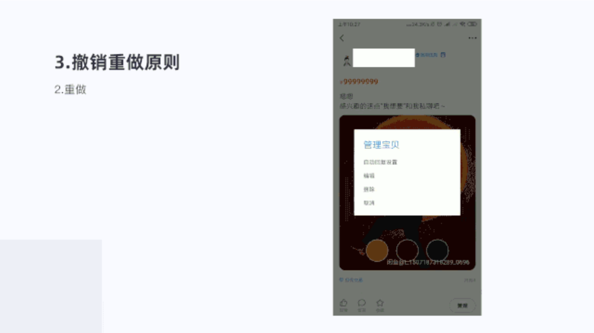 就是用戶撤銷上一步,又反悔了要到之前哪一步;或者用戶操作完成發布又反悔了重新發布,滿足用戶充足的反悔余地,給予用戶對產品的信心和控制感。