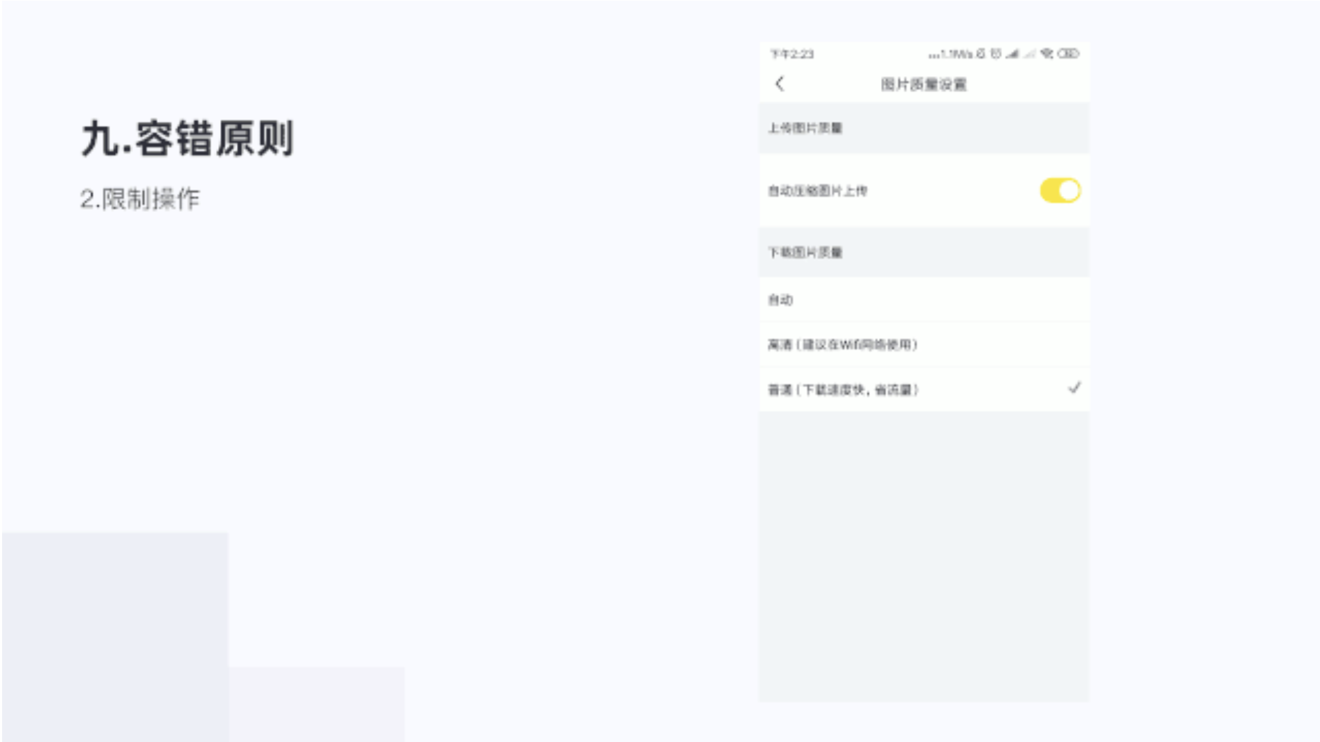 這個比較好理解就是產品設計滿足撤銷重做原則,防止用戶出現后悔操作或者誤操作等等,滿足用戶體驗逆向操作
