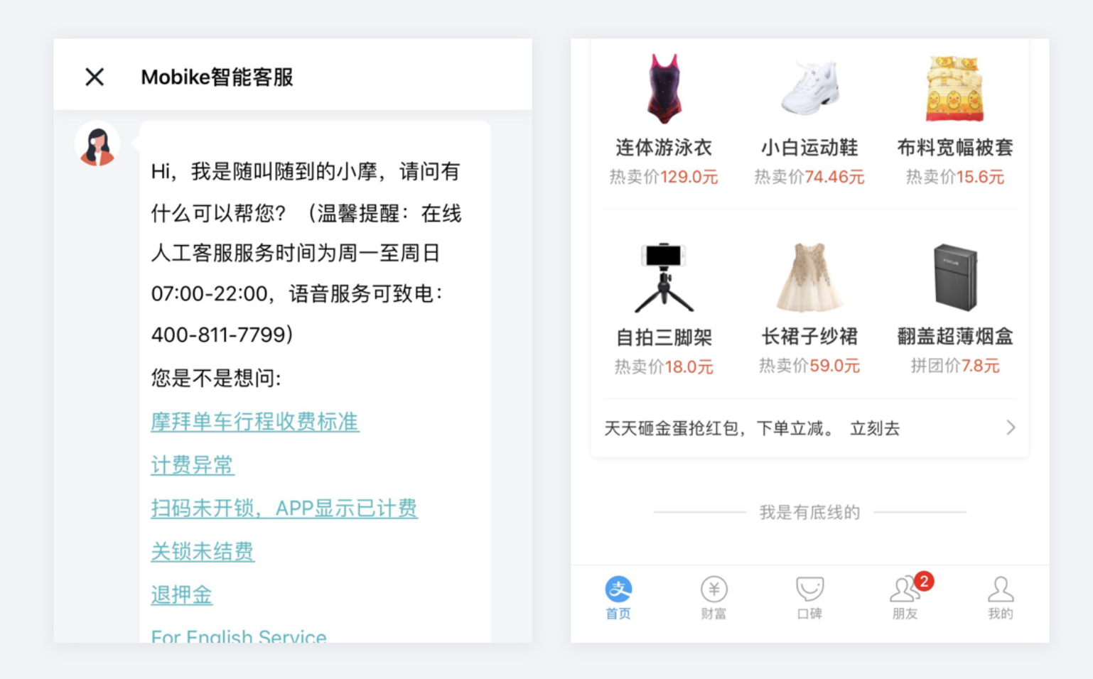 • 明確服務(wù)者定位的設(shè)計:站在服務(wù)者角度,以親近方式與用戶溝通,讓用戶感受產(chǎn)品溫度,如摩拜單車 APP 在線客服用 “您” 稱呼用戶,支付寶 APP 用 “我是有底線的” 幽默文案拉近關(guān)系。