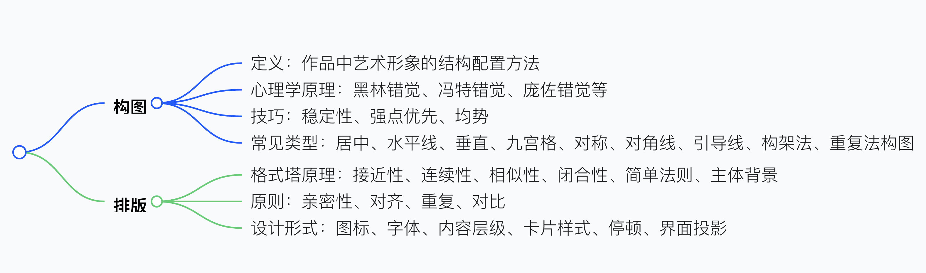 1. 定義:指作品中藝術形象的結構配置方法,是造型藝術表達思想內容并獲得藝術感染力的重要手段,在 UI 設計中主要作用是構建和諧穩定的頁面布局。