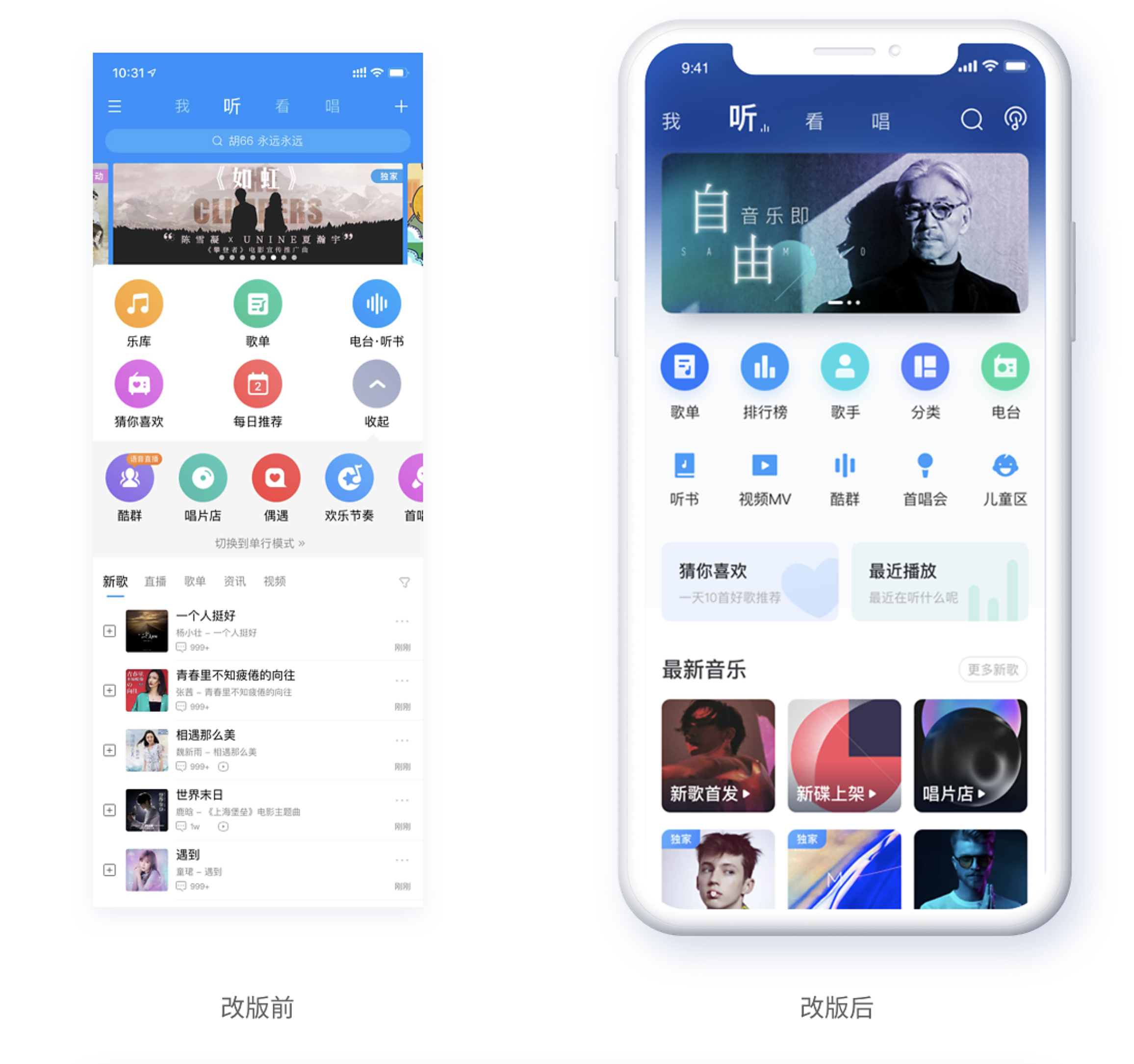 • 分析落地:根據資料和用戶畫像,確定設計目標,比如酷狗音樂改版要突出品牌感、提升界面年輕化和娛樂性。