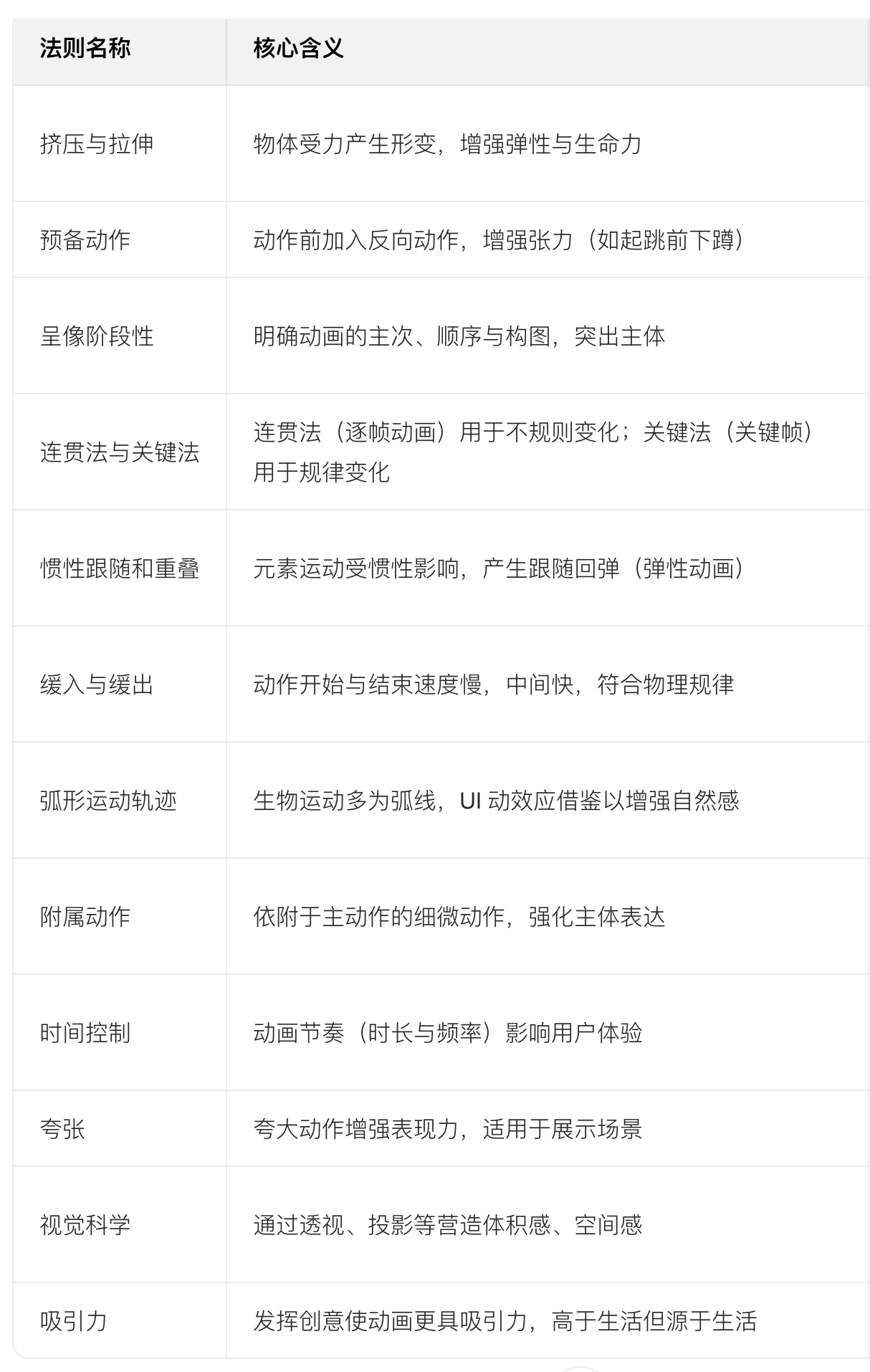 基于迪士尼 “動畫十二基本法則”,結合 UI 場景的具體實踐如下: