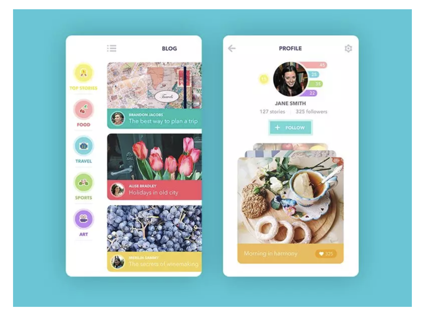 在應用或網站設計領域,顏色的選擇與組合是設計初期的重要組成部分。當被問及設計之路上的錦囊妙計時,Ludmila 表示,她在從事任何創作過程中,成功的基石主要有四個:良好的心情、傳遞積極情緒和感情的欲望、靈感以及對設計的熱愛。有了這四點作為基礎,再加上深入的知識學習或藝術探索與準備,就能收獲驚人的設計效果。