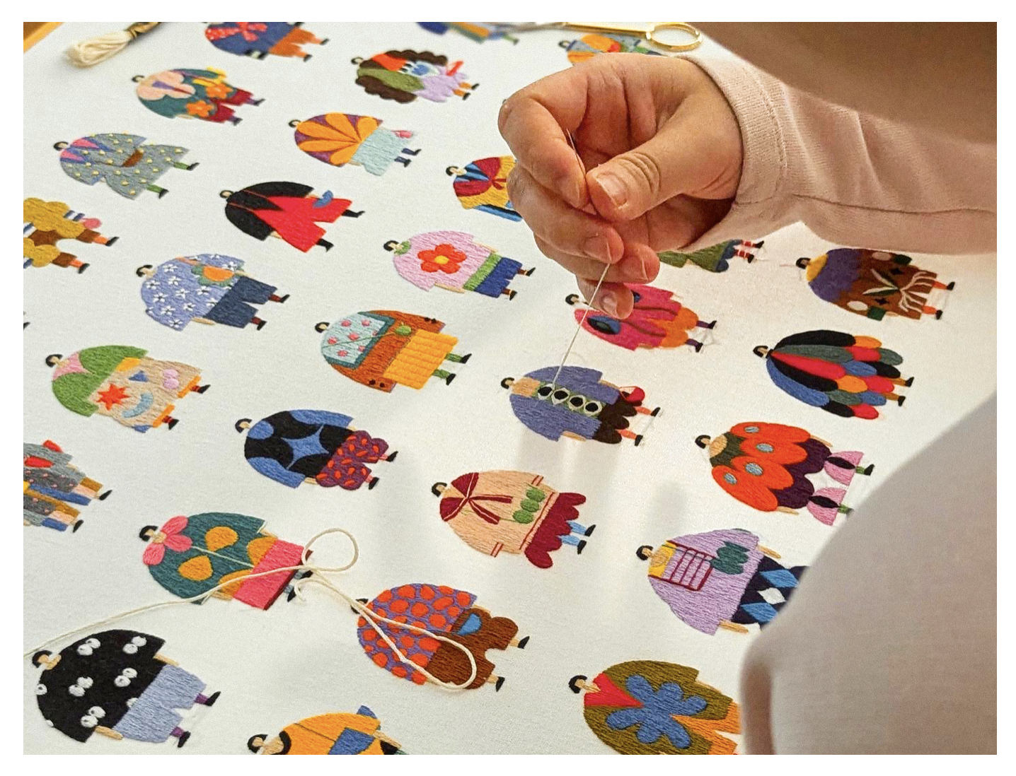 這種蛻變,本質(zhì)上是藝術(shù)與生活的相互滋養(yǎng)。“以前我覺得刺繡是‘孤獨的創(chuàng)作’,但現(xiàn)在我會抱著孩子繡東西 —— 她抓著我的線軸,我看著她的小衣服,突然就明白:好的設(shè)計不是‘脫離生活的精致’,而是‘從生活里長出來的美好’。”Irene 說。