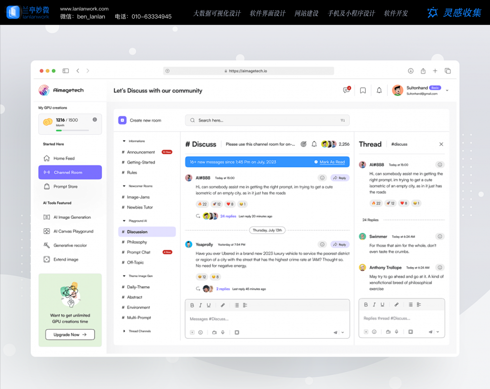 - 場景化功能聯動:左側導航欄集成 AI 工具、需求落地入口等,用戶在討論中產生的需求可直接跳轉至工具頁面,實現 “討論 - 落地” 無縫銜接,減少跨平臺切換成本。