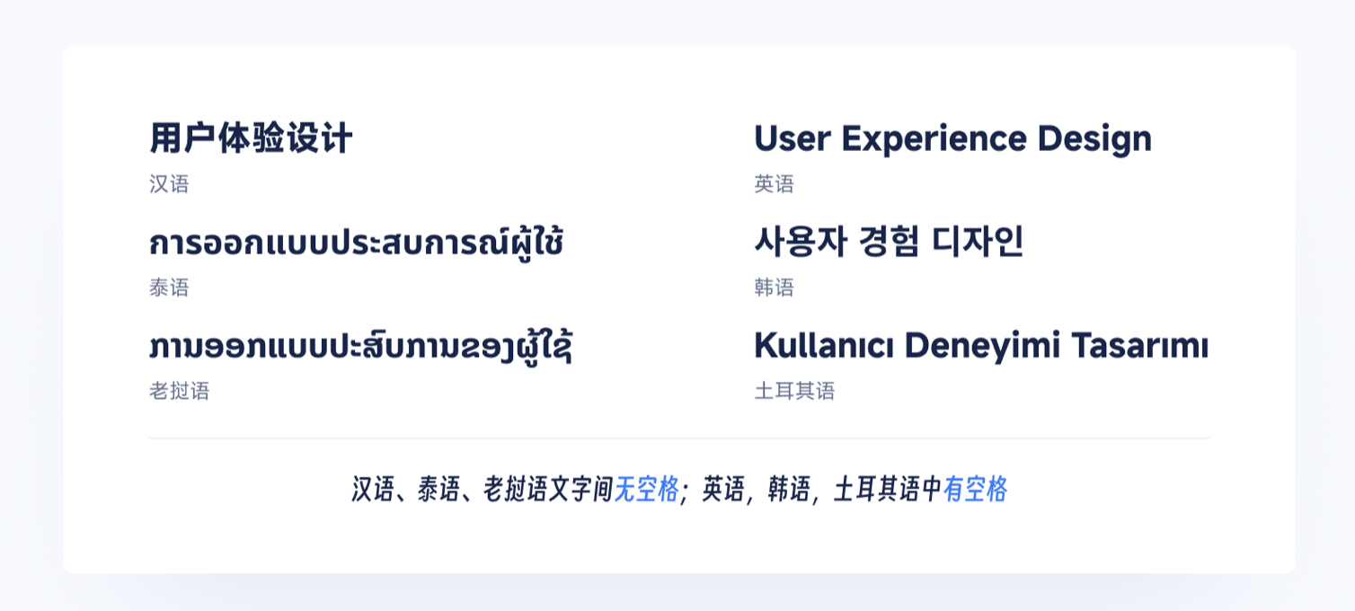 - 選擇適配的對齊方式:優先采用左對齊,保證不同語言的閱讀流暢性;允許居中對齊用于標題等場景,但避免兩端對齊 —— 尤其對于有空格分界的語言,兩端對齊會導致字間距不均,影響可讀性。