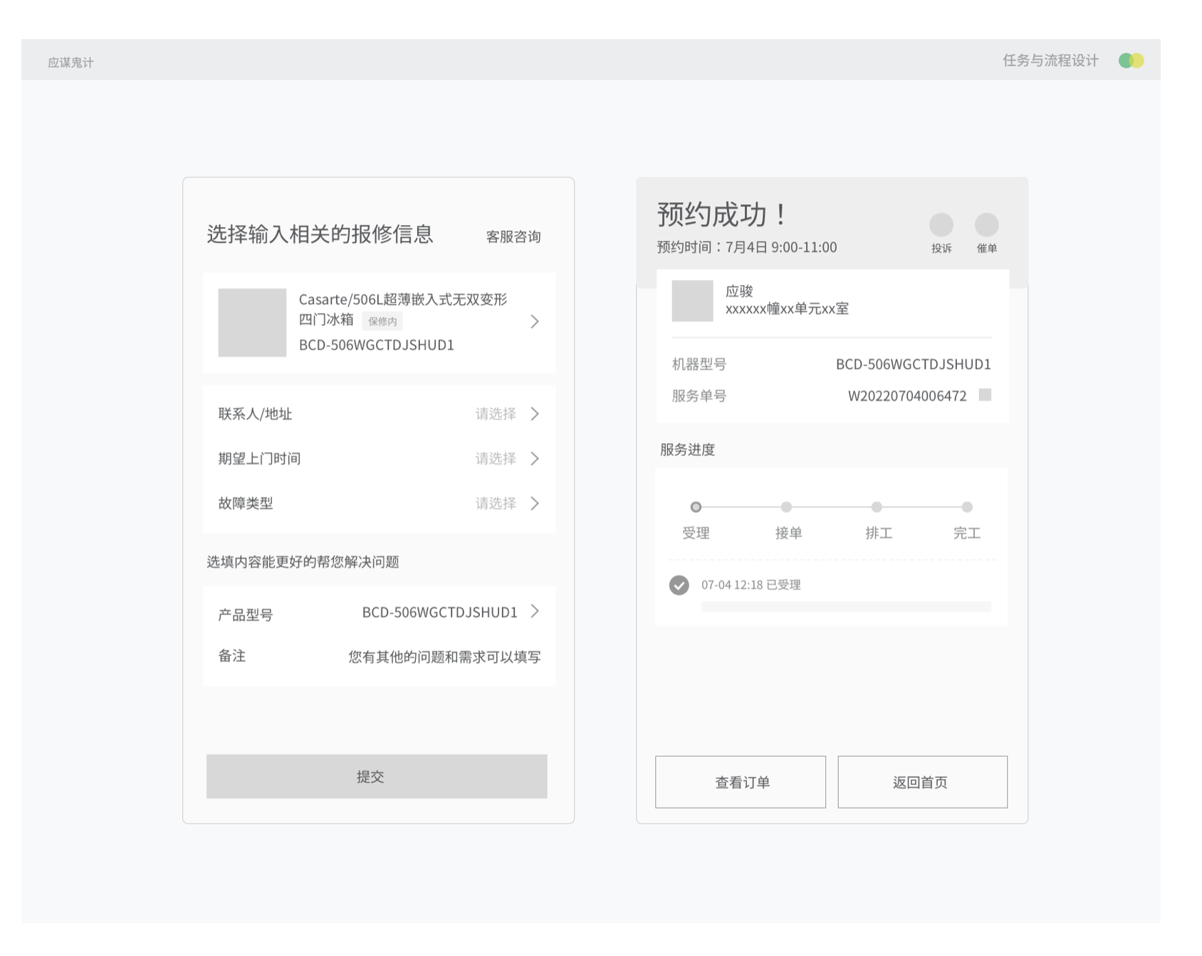 一是優先展示核心操作。將用戶當前節點必須完成的操作放在視覺焦點位置,例如在 “提交預約” 節點,“確認提交” 按鈕應采用突出的顏色和位置,與 “取消”“返回” 等次要按鈕形成區分。同時,根據用戶習慣調整控件位置,例如高頻使用的 “添加”“搜索” 按鈕可固定在頂部或底部,避免被內容遮擋。