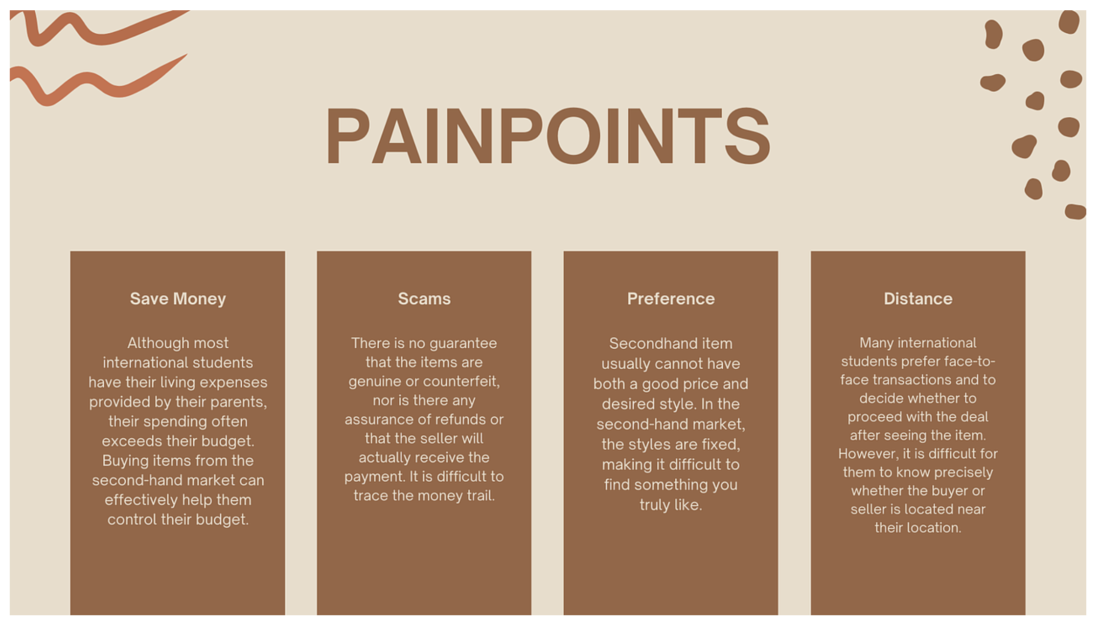 - 深入挖掘留學(xué)生在二手商品買賣過(guò)程中面臨的核心痛點(diǎn),明確其在交易安全、價(jià)格評(píng)估、溝通效率、物流適配等方面的具體需求;