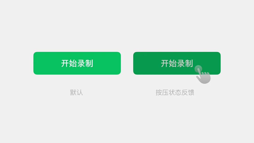 ▲當用戶輕觸“開始錄制”按鈕時,按鈕顏色加深、形態變化,直觀告知用戶操作已生效。
