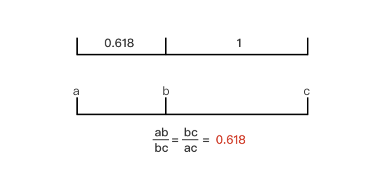 黃金分割比指將一條線段分割為兩部分,較長部分與整體部分的比值等于較短部分與較長部分的比值,其數(shù)值約為 0.618,分割線即為黃金分割線。這一比例的數(shù)學根源來自斐波那契數(shù)列:1、1、2、3、5、8、13、21、34、55…… 該數(shù)列從第 3 項開始,每一項都等于前兩項之和,相鄰兩項相除的結(jié)果會無限趨近于 0.618。在 UI 設計中,我們將接近這一數(shù)值的比例稱為近似黃金分割比,是實際設計中更具操作性的應用形式。