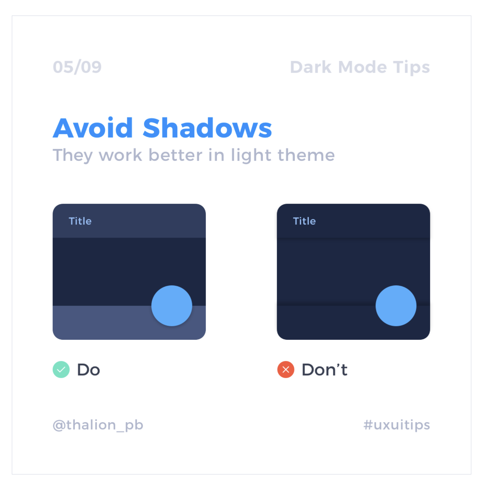 淺色模式常用陰影表達深度,但暗黑模式中陰影幾乎不可見。
