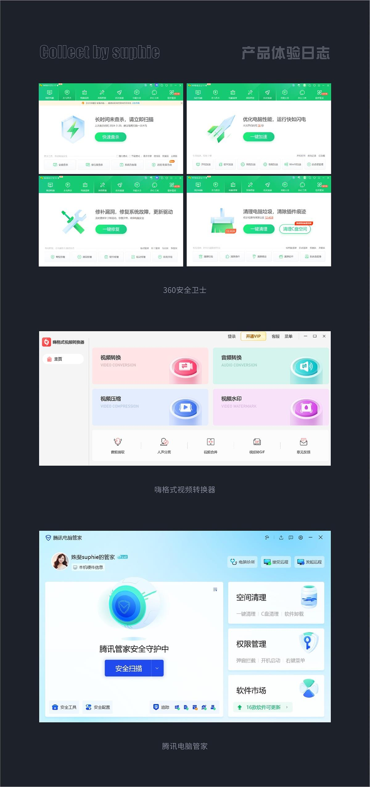 - 360 安全衛士、騰訊電腦管家、嗨格式視頻轉換器的功能圖標,均采用大眾熟知的圖形設計,精準匹配業務場景,美觀且易識別。