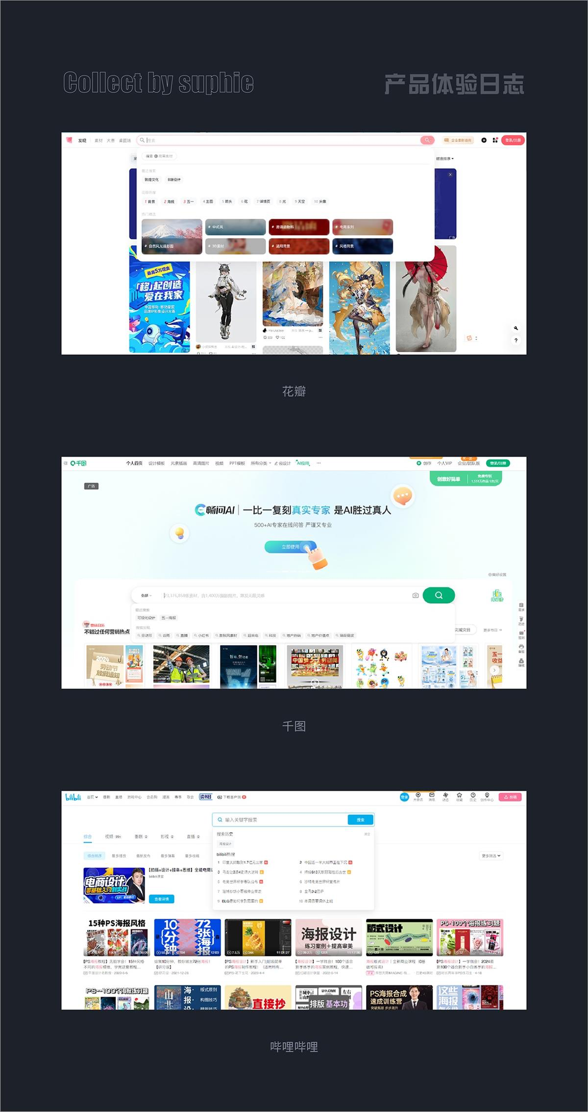 - 花瓣、千圖、嗶哩嗶哩的搜索欄,自動保存歷史搜索記錄,用戶無需重復輸入,一鍵選擇即可快速搜索。
