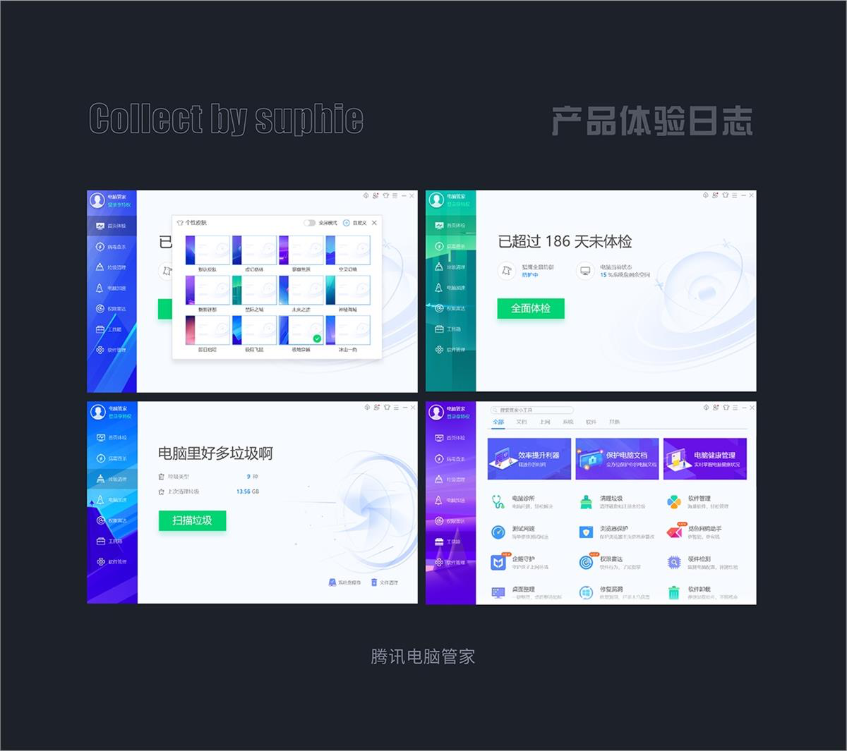 - 騰訊電腦管家內置 12 種個性皮膚,支持一鍵換膚,滿足用戶的審美與個性化需求。