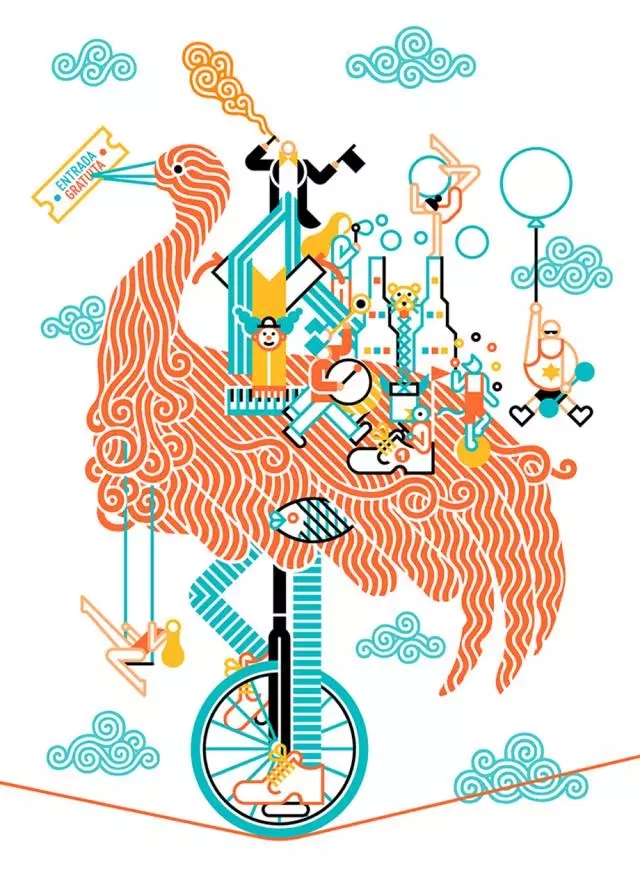 例如在這張宣傳品的配色選擇上,綠色元素鋪滿視線的時候,出現星點的橙色元素,讓人聯系到大自然里的果樹和農場,這種對自然的取色和本身配色的規律也是不約而同。
