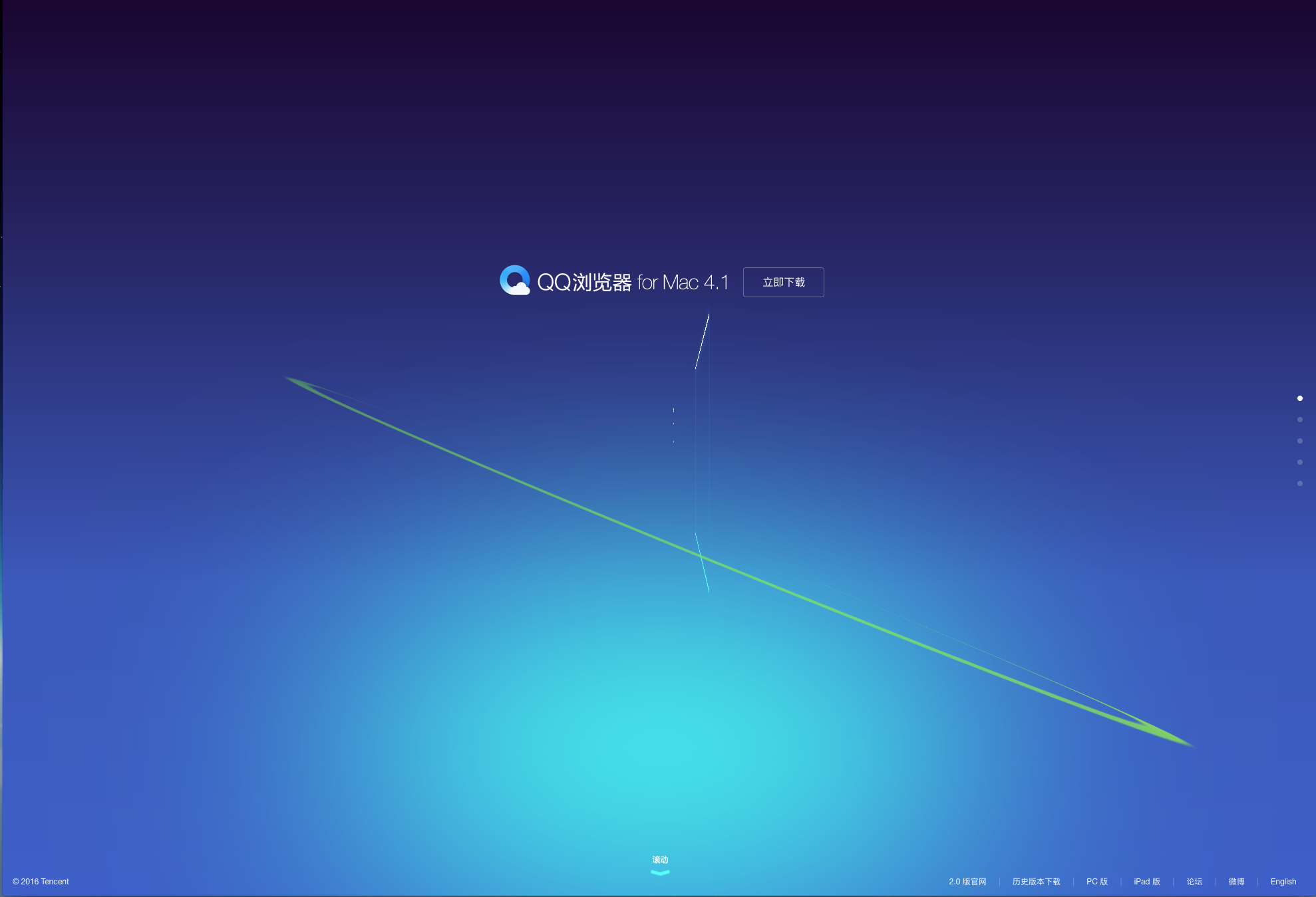 9 qq瀏覽器網站 http://browser.qq.com/mac/ 很炫的立體動效 整屏切換html5 這是一個讓人眼前一亮的網站,因為動效創造了驚喜。
