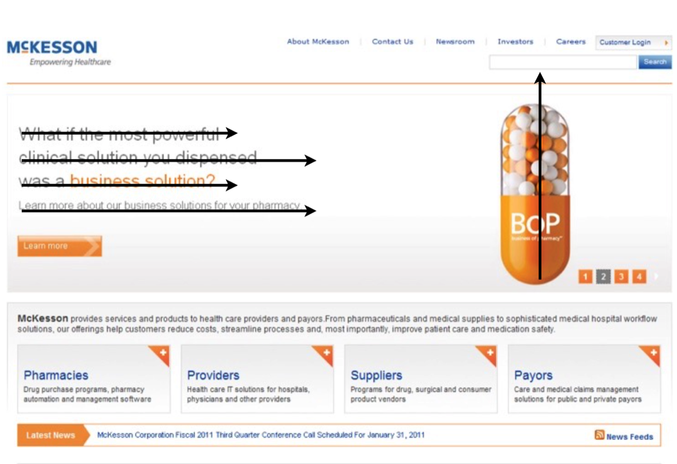 另外,對于色彩的運用也不會是一味地迎合人們的視覺習慣,色彩同樣可以用于引導瀏覽,把用戶的視線“牽著”走。我們可以預先在設計時考慮用戶的瀏覽路徑,用色彩來強化我們想要用戶知道的信息。