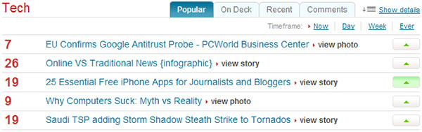 把操作放在每一行數(shù)據(jù)的開(kāi)頭或結(jié)尾,是個(gè)簡(jiǎn)單方法。如下所示,Mixx把操作放在了每一行的末尾,這樣很容易進(jìn)行投票的操作。