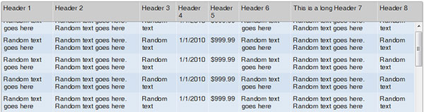 這是一個(gè)不錯(cuò)的簡(jiǎn)單技巧,你可以用它來(lái)保持表頭始終可見(jiàn)。 數(shù)據(jù)列表相當(dāng)龐大而復(fù)雜的時(shí)候,使用它可以幫助用戶區(qū)分多列。 FixedHeaderTable插件是一個(gè)很好的例子。