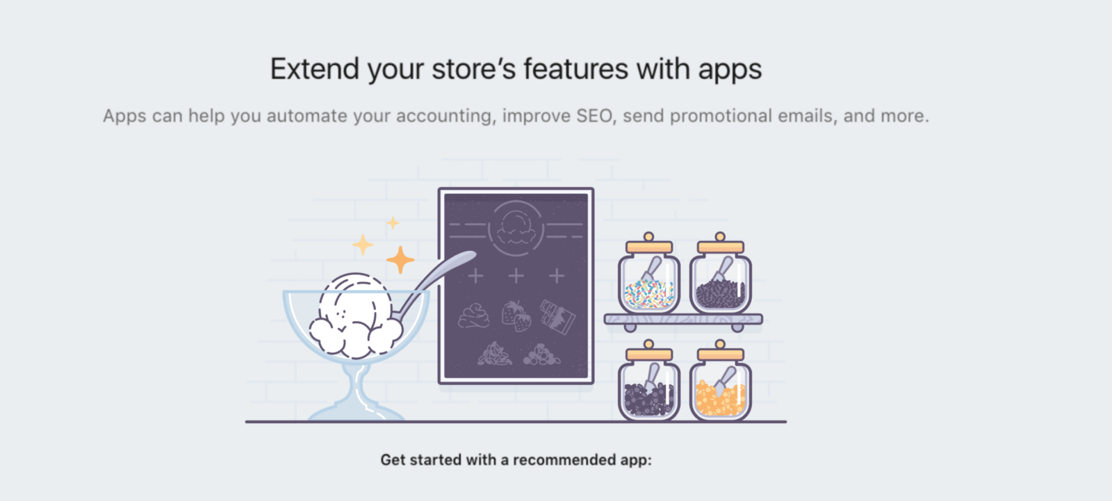 這個元素與那個元素在某刻具備相似性。如下圖所示,它不需要展示實際產(chǎn)品就能讓用戶理解。圖中并不是真正在討論冰激凌,而是通過插畫以比喻的方式傳遞了“正如用戶能夠按口味喜好用配料調(diào)制成個人專屬的冰激凌一樣,你也能根據(jù)自己的需要為利用我們提供的服務(wù)(App)來打造你的專屬店鋪”的理念。