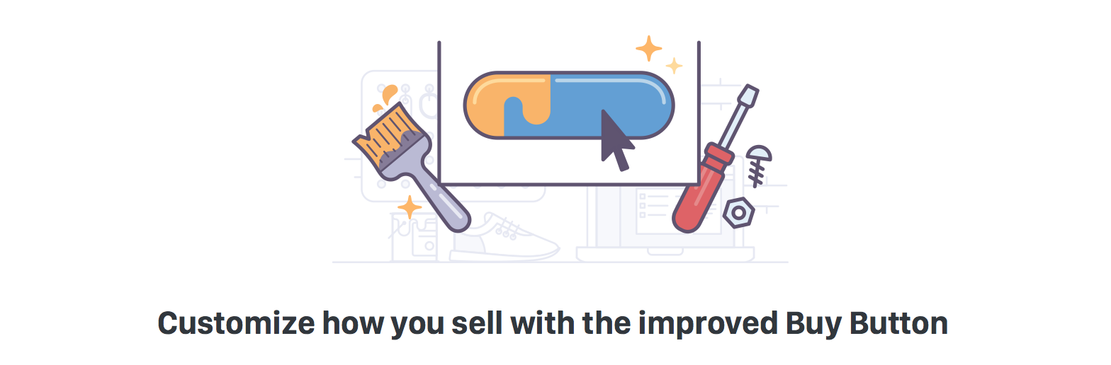 這個元素與那個元素融合,就能表達(dá)我們想要傳遞的內(nèi)容。可能這類比喻使用起來需要更老道的經(jīng)驗,但在產(chǎn)品插畫里的確更受重視,或者說一般設(shè)計都會考慮它,因為它是讓用戶獲知你的產(chǎn)品或功能賣點的捷徑。如下圖所示,沒錯,你知道我們提供了“購買”的按鈕,但瞧瞧旁邊擺放的畫筆,基于對畫筆的了解,你就會明白你能定制“購買”按鈕的顏色。將刷子的功能與按鈕的功能混合起來,刷子可以自定義顏色,因此我們的按鈕也可以。與品牌和營銷設(shè)計一樣,這種比喻在圖標(biāo)設(shè)計中也時常出現(xiàn)。