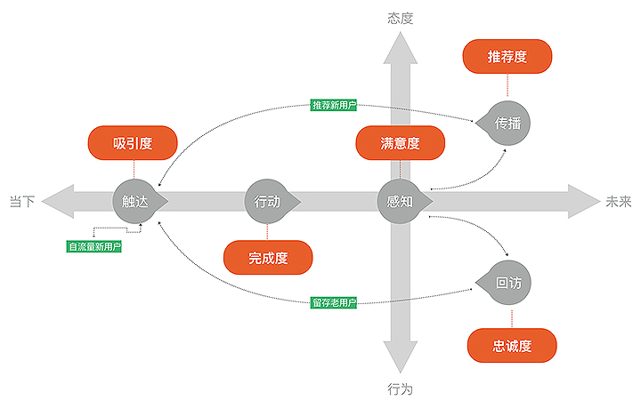 以上這3點是我們設計人員在工作中需要看數(shù)據(jù)的原因。但在設計工作中,數(shù)據(jù)使用主要關注2個方面,一個是看什么數(shù)據(jù),另一個是如何使用數(shù)據(jù)。設計師看什么數(shù)據(jù),我們根據(jù)用戶體驗設計目標與產(chǎn)品生命周期,形成了用戶體驗的“5度”模型,即吸引度、完成度、滿意度、忠誠度、推薦度。不同產(chǎn)品的5度具體指標要根據(jù)產(chǎn)品實際情況來定義,今天我就不展開來講了,詳細可以查看阿里UED博客或《U一點料》