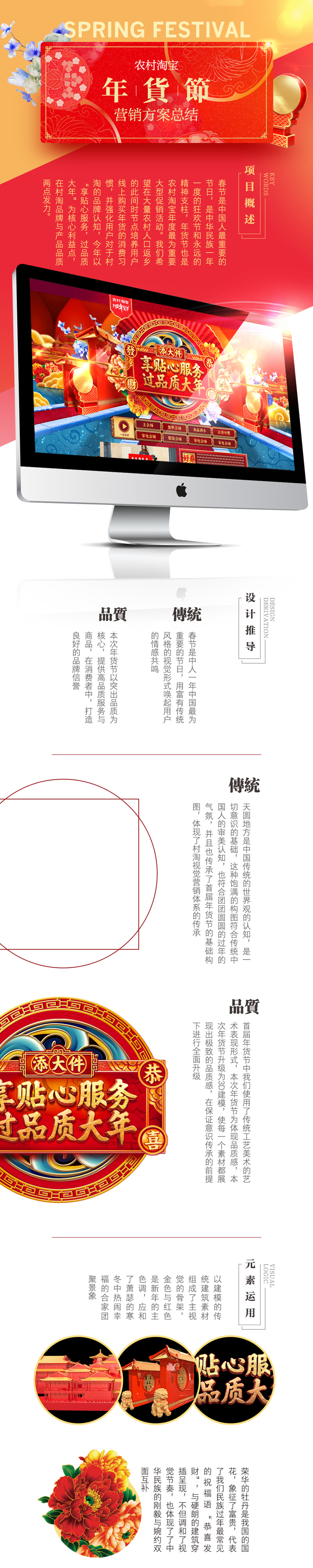 元旦已立,新春即臨,這是中國人最重要的傳統節日,也代表了農村淘寶年度最為重要大型促銷活動年貨節的即將上線。我們在本次大促之中除了完成常規的需求之外也進行了多項創新性嘗試與自發的創新項目,包括針對線下營銷場景特點的視頻制作,創新大屏的全新功能上線等等。