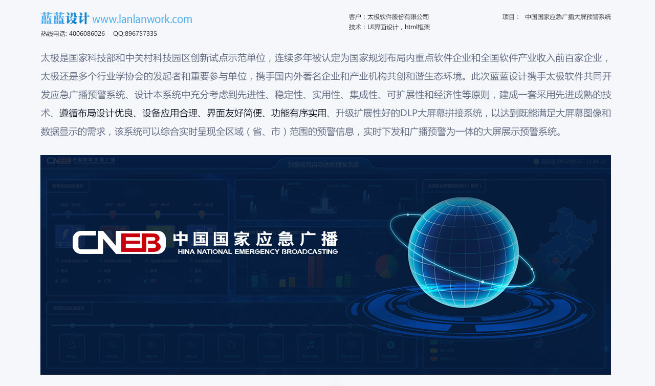 北京藍藍設(shè)計作品:    太極集團承接的中央臺應(yīng)急指揮中心大屏