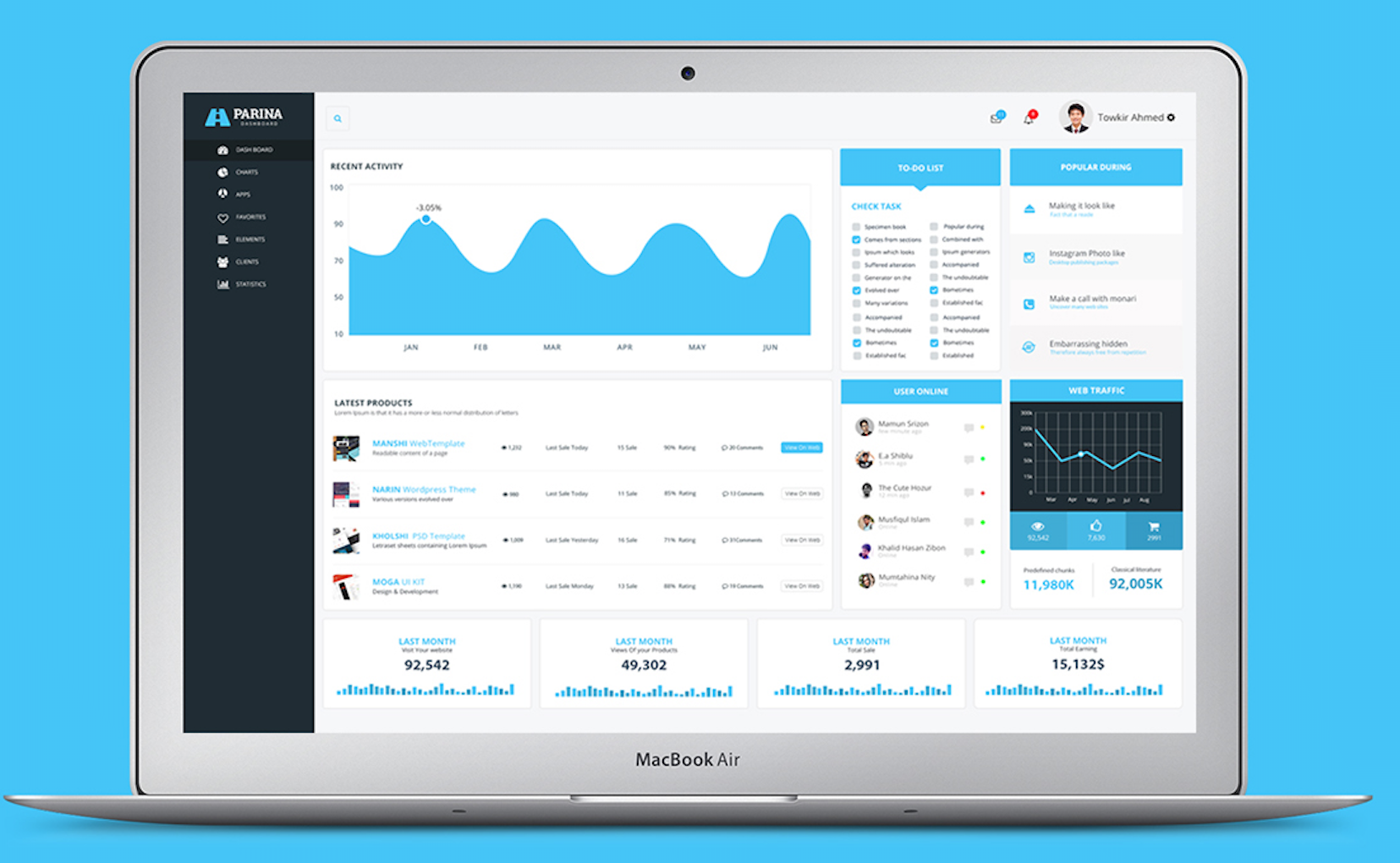 后臺(tái)管理軟件界面設(shè)計(jì)一:藍(lán)色經(jīng)典的扁平風(fēng)格。