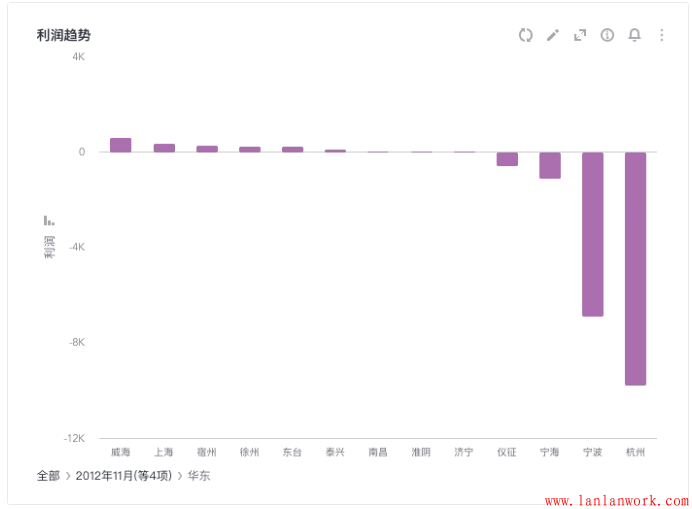 (1)比較數(shù)據(jù)差異情況。基于分類的數(shù)據(jù),可以通過比較數(shù)據(jù)來了解不同分類的差異,比如柱狀圖。基于流程的數(shù)據(jù),可以通過比較數(shù)據(jù)了解數(shù)據(jù)的變化趨勢,比如折線圖。